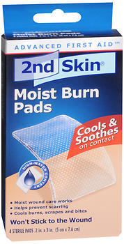 2nd Skin Moist Burn Pads are made from pure, sterile water. These pads provide a moist comfortable barrier to help keep the burn clean and to help protect the burn. 2nd Skin Moist Burn Pads will not stick to the wound. Sterile pads measure 2 in x 3 in (5 cm x 7.6 cm).