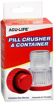 1. Unscrew crusher cap, place pills into container and replace cap. 2. Turn the crusher cap back and forth to crush the pill. 3. Repeat the back and forth movement until a uniform powder has been achieved. Remove cap to empty crushed pills. 5. To store pills, unscrew bottom, fill container with pills, and replace cap. Note: Not all pills should be crushed. Consult your physician or pharmacist prior to crushing pills. Cleaning: Wash in warm soapy water, rinse well and allow to air dry.
