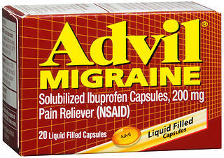 READ AND KEEP CARTON FOR COMPLETE WARNINGS AND INFORMATION. Allergy alert: Ibuprofen may cause a severe allergic reaction, especially in people allergic to aspirin. Symptoms may include: hives, facial swelling, asthma (wheezing), shock, skin reddening, rash, blisters. If an allergic reaction occurs, stop use and seek medical help right away. Stomach bleeding warning: This product contains an NSAID, which may cause severe stomach bleeding. The chance is higher if you: are age 60 or older; have had stomach ulcers or bleeding problems; take a blood thinning (anticoagulant) or steroid drug; take other drugs containing prescription or nonprescription NSAIDs [aspirin, ibuprofen, naproxen, or others]; have 3 or more alcoholic drinks every day while using this product; take more or for a longer time than directed. Do not use: If you have ever had an allergic reaction to any other pain reliever/fever reducer, right before or after heart surgery. Ask a doctor before use if: you have never had migraines diagnosed by a health professional; you have a headache that is different from your usual migraines; you have the worst headache of your life; you have fever and stiff neck; you have headaches beginning after or caused by head injury, exertion, coughing or bending; you have experienced your first headache after the age of 50; you have daily headaches; you have a migraine so severe as to require bed rest; stomach bleeding warning applies to you; you have problems or serious side effects from taking pain relievers or fever reducers; you have a history of stomach problems, such as heartburn; you have high blood pressure, heart disease, liver cirrhosis, kidney disease, or asthma; you are taking a diuretic. Ask a doctor or pharmacist before use if you are: under a doctor's care for any serious condition; taking aspirin for heart attack or stroke, because ibuprofen may decrease this benefit of aspirin; taking any other drug. When using this product: take with food or milk if stomach upset occurs, the risk of heart attack or stroke may increase if you use more than directed or for longer than directed. Stop use and ask a doctor if: you experience any of the following signs of stomach bleeding: feel faint, vomit blood, have bloody or black stools, have stomach pain that does not get better; migraine headache pain is not relieved or gets worse after the first dose; any new symptoms appear. If pregnant or breast-feeding, ask a health professional before use. It is especially important not to use ibuprofen during the last 3 months of pregnancy unless definitely directed to do so by a doctor because it may cause problems in the unborn child or complications during delivery. Keep out of reach of children. In case of overdose, get medical help or contact a Poison Control Center right away.