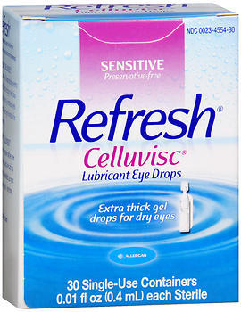 For the temporary relief of burning, irritation, and discomfort due to the dryness of the eye or exposure to wind or sun. May be used as a protectant against further irritation. REFRESH CELLUVISC Lubricant Eye Drops provide extra strength moisturizing relief plus protection for dry, irritated eyes with our thickest gel formula for sensitive eyes. REFRESH CELLUVISC comes in convenient single-use vials and is safe to use as often as needed, so your eyes can feel good - anytime, anywhere.