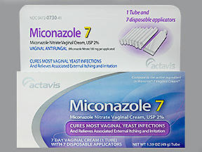 Miconazole Nitrate vaginal cream 2%. Cures most vaginal yeast infections. Relieves external vulvar itching & irritation associated with a yeast infection. 7 day vaginal cream. If this is the first time you have had vaginal or vulvar itch and discomfort, consult your doctor. If you have had a doctor diagnose a vaginal yeast infection before and have the same symptoms now, use this cream as directed.