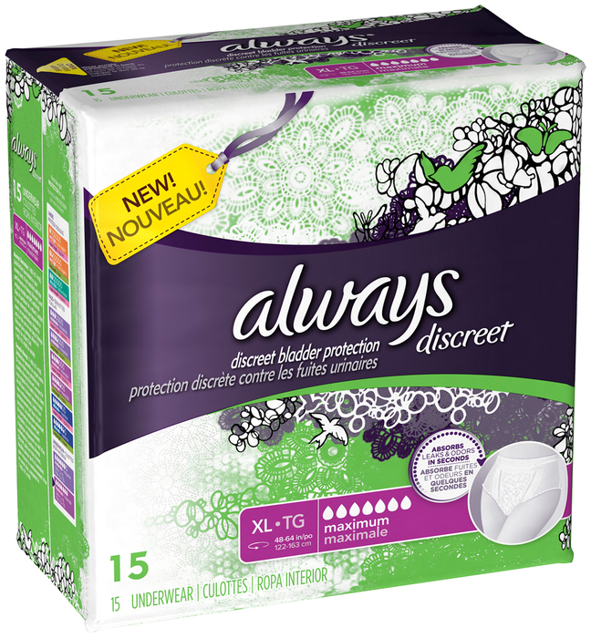 Always Discreet Underwear Maximum Absorbency Size XL - 15 EA