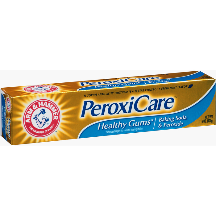 Aids in the prevention of dental decay. For healthy teeth and gums, brush regularly with Arm & Hammer PeroxiCare. Cleans with effervescence. Removes plaque. Kills germs for fresh breath. Whitens teeth. Contains fluoride for cavity protection. Low abrasion formula