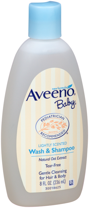 AVEENO Baby Wash and Shampoo contains natural oat extract that cleans without drying because it is soap-free and hypoallergenic. This tear-free formula can be used on skin and hair for gentle cleansing that rinses clean with a soft, fresh fragrance. AVEENO Baby Wash and Shampoo is even gentle enough for newborns and babies with sensitive skin. AVEENO can be used every day to help keep your baby's skin soft, smooth and healthy.