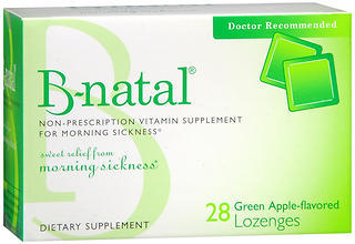 B-Natal Non-Prescription Vitamin Supplement for Morning Sickness lozenges are doctor recommended to relieve morning sickness. Each lozenge is a dietary supplement that gives you an essential dose of vitamin B6, preventing you from becoming nauseous. Plus, enjoy your B6 lozenges in this refreshing green apple flavor.