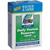 Fill each side of your lens case with fresh ReNu Multi-Purpose Solution. Add one drop of ReNu 1 Step Daily Protein Remover to each well of your Bausch & Lomb ReNu lens case to remove protein while lenses are soaking in ReNu Multi-Purpose Solution. Soak lenses for at least four hours (lenses may be soaked overnight) before wearing to ensure proper cleaning and disinfecting. Do not exceed 12 hours. After removing lenses from lens case, rub and rinse lenses thoroughly with ReNu Multi-Purpose Solution to remove loosely adhering debris remaining from the cleaning process. Lenses are now ready to wear. Store at room temperature (15-30 degrees C, 59-86 degrees F).