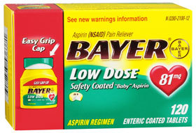 Bayer Low Dose Safety Coated Baby Aspirin 81mg - 120 Coated Tablets
