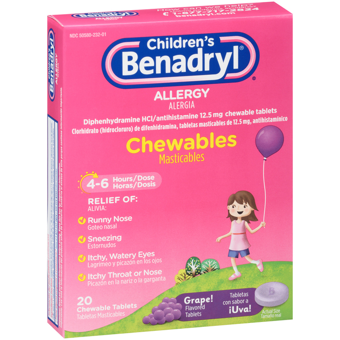 Benadryl Children's Allergy Chewable Tablets Grape Flavored - 20 TAB