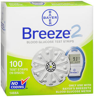 Breeze 2 Blood Glucose Test Strips. Only use with Bayer's Breeze 2 Blood Glucose Meter. No Coding.