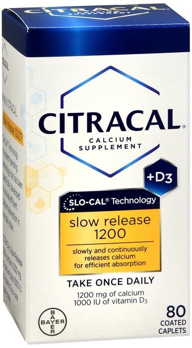 Slow release calcuim supplement by Bayer, with SLO-CAL Technology +D3.