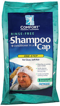 For a gentle and easy-to-use, one-step hair cleansing system, look no further than the Comfort All-in-One Rinse-Free Shampoo and Conditioner Cap. This cap allows you to cleanse and moisturize your scalp and hair without water. It’s the preferred and convenient choice for people who’ve just had surgery or are unable to shower for any reason. Simply microwave the cap for the directed amount of time, apply, and you have clean hair without the mess!