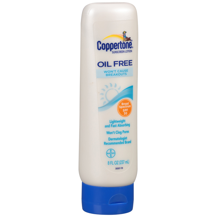 Screens out the sun's burning rays to help prevent sunburn. Provides protection from UVA rays that may contribute to skin damage and premature aging of the skin. Higher SPF gives more sunburn protection. Retains SPF after 80 minutes of activity in the water or sweating. Coppertone Oil Free sunscreen lotion - Pure and Simple Sun Protection means: Oil free, fragrance free, hypoallergenic. Broad spectrum UVA/UVB protection with photostabilized Avobenzone. Helps prevent premature skin aging from the sun. Won't clog pores or cause breakouts. Waterproof, PABA-free. Light, non-greasy formula absorbs quickly.