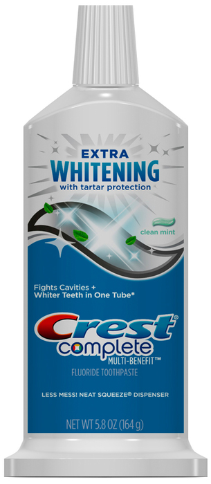 Helps protect against cavities. Polishes for natural whiteness.* The Neat Squeeze dispenser has a unique inner bag that empties itself as you squeeze in the middle. When the package gets lighter and is harder to squeeze, it's time to buy more Crest. Fights cavities. Helps the natural whiteness of your teeth come through. Contains a special enamel-safe polishing ingredient. *Whitens by gently polishing away stains, not bleaching. Fights visible tartar build-up. Baking soda without a strong salty taste. Leaves teeth feeling slick and smooth.