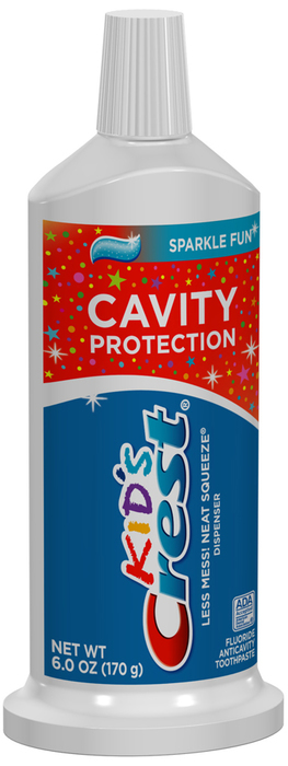 Helps protect against cavities. The Neat Squeeze dispenser has a unique inner bag that empties itself as you squeeze in the middle. When the package gets lighter and is harder to squeeze, it's time to buy more Crest. Fights cavities with clinically proven Fluoristat. Gentle on tooth enamel. Fun filled sparkles and sparkle fun flavor for kids.