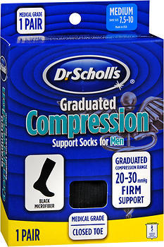 Dr. Scholl's Graduated Compression Support Socks for Men 20-30 mmHg Medium Black - 1 EA