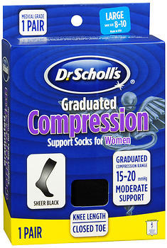 Dr. Scholl's Graduated Compression Support Socks for Women Knee Length Closed Toe Moderate Support Large Sheer Black - 1 EA