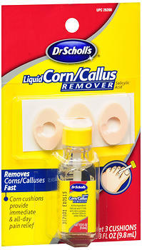 For the removal of corns and calluses. Relieves pain by removing corns and calluses. Works safely and effectively. Soft cushions relieve painful pressure while the medicated liquid removes the corn/callus. Self-stick waterproof adhesive holds cushion in place. Contents: 3 cushions and 1/3 oz (9.8 mL) liquid.