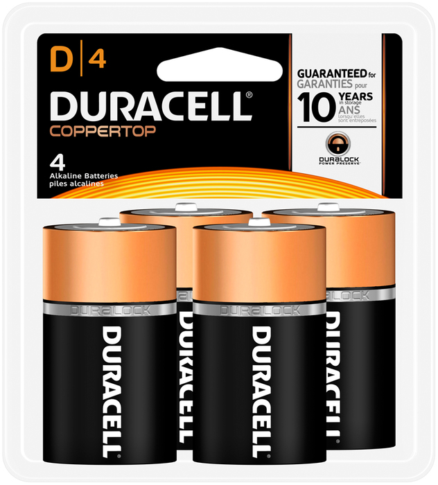 Duracell Coppertop Alkaline D Batteries 1.5 Volt (4) - 4 EA