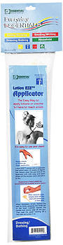 Apply cream or lotion on foam applicator. Lotion EZE comes with a washable pad which lasts 4-6 weeks of regular use. Simply clean the pad end of the applicator with mild soap and water, shake off the excess water and allow to air dry. Replacement pads (L3043) are inexpensive and available at your dealer. After several uses simply peel off the pad and press on a new one. When necessary simply replace the pad by firmly grasping the small tab of the foam material nearest the handle and slowly peel off the pad. Then peel the paper backing off a new pad and press it on.