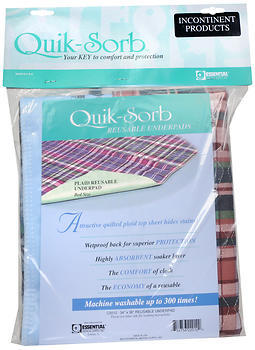 Incontinence. Quilted plaid top sheet hides stains. Wetproof back for superior protection. Highly absorbent soaker layer. The comfort of cloth. Machine washable up to 300 times.