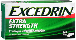 Excedrin Extra Strength is the perfect recipe for fast and effective pain relief. It is uniquely formulated with aspirin, acetaminophen and therapeutically active caffeine. Each dose quickly relieves minor aches and pains and is specially designed to help get rid of migraines, nighttime headaches and tension headaches.