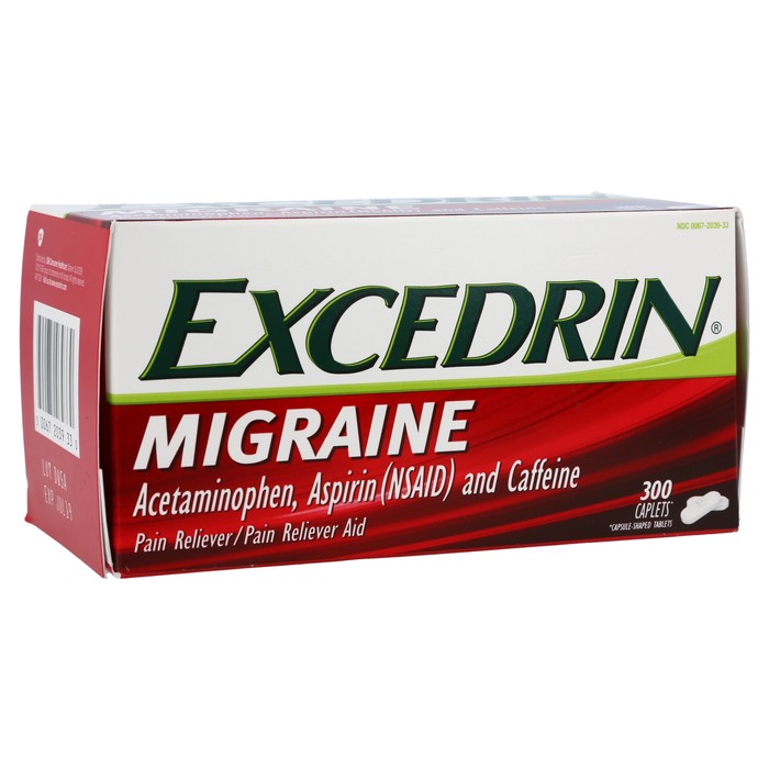 Excedrin Migraine is a non-prescription pain reliever that contains acetaminophen, aspirin, and therapeutically active caffeine. When properly ingested, migraine sufferers notice a reduction in pain within 30 minutes, pain relief that lasts, and major imp
