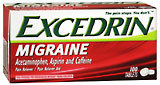 Reye's syndrome: Children and teenagers who have or are recovering from chicken pox or flu-like symptoms should not use this product. When using this product, if changes in behavior with nausea and vomiting occur, consult a doctor because these symptoms could be an early sign of Reye's syndrome, a rare but serious illness. Allergy Alert: Aspirin may cause a severe allergic reaction which may include: hives, facial swelling, asthma (wheezing), shock. Alcohol Warning: If you consume 3 or more alcoholic drinks every day, ask your doctor whether you should take acetaminophen and aspirin or other pain relievers/fever reducers. Acetaminophen and aspirin may cause liver damage and stomach bleeding. Caffeine warning: The recommended dose of this product contains about as much caffeine as a cup of coffee. Limit the use of caffeine-containing medications, foods, or beverages while taking this product because too much caffeine may cause nervousness, irritability, sleeplessness, and, occassionally, rapid heart beat. Do not use if you have ever had an allergic reaction to any other pain reliever/fever reducer; with any other products containing acetaminophen (see overdose warning). Ask a doctor before use if you have never had migraines diagnosed by a health professional; a headache that is different from your usual migraines; the worst headache of your life; fever and stiff neck; headaches beginning after or caused by head injury, exertion, coughing or bending; experienced your first headache after the age of 50; daily headaches; a migraine so severe as to require bed rest; asthma; bleeding problems; ulcers; stomach problems such as heartburn, upset stomach, or stomach pain that do not go away or recur; problems or serious side effects from taking pain relievers or fever reducers; vomiting with your migraine headache. Ask a doctor or pharmacist before use if you are: taking a prescription drug for: anticoagulation (thinning of the blood), diabetes, gout, arthritis; under a doctor's care for any serious condition; taking any other drug; taking any other product that contains aspirin, acetaminophen, or any other pain reliever/fever reducer. Stop use and ask a doctor if an allergic reaction occurs, seek medical help right away; your migraine is not relieved or worsens after first dose; new or unexpected symptoms occur; stomach pain or upset gets worse or lasts; ringing in the ears or loss of hearing occurs. If pregnant or breast-feeding, ask a health professional before use. It is especially important not to use aspirin during the last 3 months of pregnancy unless definitely directed to do so by a doctor because it may cause problems in the unborn child or complications during delivery. Keep out of reach of children. Overdose warning: Taking more than the recommended dose can cause serious health problems, including serious liver damage. In case of overdose, get medical help or contact a Poison Control Center right away. Quick medical attention is critical for adults as well as for children even if you do not notice any signs of symptoms.