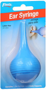 1. Soften ear wax with olive oil or Flents Ear Drops ear wax removal aid. 2. Fill ear syringe with luke warm water (not hot water). 3. Gently pull ear back to open and straighten ear canal. 4. Insert tip just inside the ear. Do not push the syringe into the ear, or you could damage the ear canal. 5. Gently squirt water into the ear canal. 6. Remove syringe as wax surrounds the tip of the ear syringe. To clean: Wash thoroughly in warm, soapy water. Rinse well. Sterilize by placing in boiling water for 10 seconds.