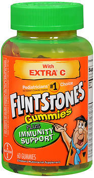 With extra** vitamin C. With nutrients your child needs to*: Support the immune system with vitamins C, E and zinc. Aid in the release of energy from food with vitamins B6, B12, biotin and pantothenic acid. Support healthy eyes with vitamins A, C and E. **Compared to Flintstones Complete. *These statements have not been evaluated by the Food and Drug Administration. This product is not intended to diagnose, treat, cure, or prevent any disease.