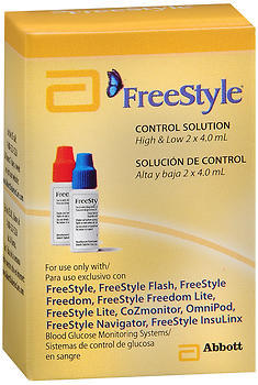 For self-testing. For use only with: FreeStyle, FreeStyle Flash, FreeStyle Freedom, FreeStyle Freedom Lite, FreeStyle Lite, CoZmonitor, OmniPod, FreeStyle Navigator, FreeStyle InsuLinx blood glucose monitoring systems. Contains high and low 2 x 4.0 mL bottles.