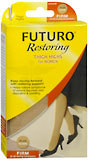 FUTURO Restoring Thigh Highs for Women provide a wonderful, stimulating energy to empower you more every day! Some chronic leg symptoms can be a nuisance, but these fashionable Thigh Highs can help you go above and beyond with a younger, healthier feeling! These soft Thigh Highs also look sophisticated and stylish with an extra-durable toe and heel to keep you looking fantastic, even after repeated wearings. Restoring Benefits: Graduated Compression: Improves circulation with maximum compression at the ankle that gradually decreases up the leg to provide a restoring feeling. Massage-in-Motion: Massages tired, achy legs as you move. Ideal for: Being on your feet or sitting in one place all day, traveling, or active office work. Can also be used post-surgery. Vein Therapy: Helps relieve symptoms of moderate-to-severe varicose veins and swelling. Help for Chronic Symptoms: Edema, ulcerations, and swelling.