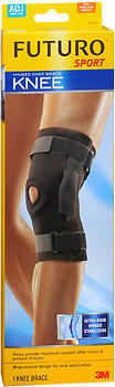 This FUTURO SPORT Hinged Knee Brace provides comfortable, rigid support and protection in case of a moderate to severe injury, or to help prevent reinjury during sports or other physical activities. Apply either on top of, or below clothing. Designed for superior medial/lateral support during vigorous activity. Patella buttress for stability and protection of the kneecap. Adjustable fit and level of support. Fits right or left leg. Cinch straps for secure customizable fit. Neoprene blend material for warmth and durability. Patella buttress helps manage chondromalacia (irritated kneecap). Hinged metal stays for rigid stability. Smooth edges for comfort. Firm stabilizing support