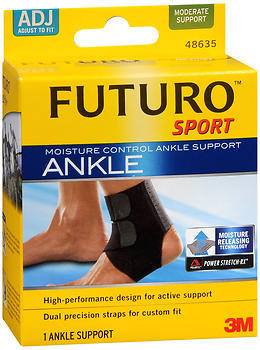 This FUTURO SPORT Moisture Control Ankle Support helps provide support to stiff, weak or injured ankles. A unique combination of neoprene-blend and Polartec Power Stretch-RX materials helps keep the ankle warm and limber while releasing excess heat and moisture. Wear during sports or other vigorous activities. Antimicrobial treatment for odor control. Breathable, moisture-wicking Polartec Power Stretch-RX material for Achilles tendon comfort. Dual precision straps lift and support arch of foot. Strong, durable materials help provide stability. High-performance design for active support.