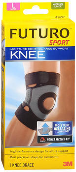 Provides support to stiff, weak or injured knees. A unique combination of neoprene and Polartec Power Stretch-RX materials keeps the knee warm and limber while releasing excess heat and moisture. The contoured design and precision straps will help keep the support in place during sports or other vigorous activities. Designed to help prevent re-injury. Fits right or left knee. Contoured design with dual precision straps for anatomical fit. Antimicrobial treatment inhibits growth of odor-causing bacteria on the support. Breathable, moisture-wicking Polartec Power Stretch-RX material in back panel for comfort. Open patella design for support and comfort of the kneecap. Strong, durable materials help provide stability. Moderate support.