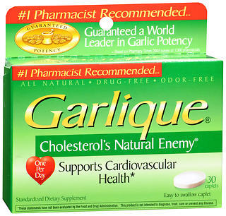Supports cardiovascular health.* Cardiovascular support: Garlic has been used for centuries to support a healthy cardiovascular system. Garlic contains alliin and allinase, which combine to produce allicin-the ingredient in garlic that most scientists believe is responsible for providing support for cardiovascular health and helping to maintain cholesterol levels already within the normal range.* A world leader in product potency: Allicin yield, the amount of allicin that can be produced when the alliin and allinase in garlic combine, is an important measure of garlic's potency and effectiveness. The garlic used in GARLIQUE has the very highest allicin yield and is processed with extreme care and attention, guaranteeing that the potency is preserved. Independent laboratory testing helps ensure that each new GARLIQUE caplet yields at least 5000 mcg of allicin faster than before, which means that more is available to the body sooner. Odor-free: GARLIQUE caplets are enteric coated (absorbed in the small intestine, not in the stomach), odor-free, tasteless, easy to swallow and easy to digest. GARLIQUE has none of the unsocial qualities associated with fresh garlic cloves. One per day: New GARLIQUE caplets are easier to swallow and so convenient that you take only one caplet per day to support cardiovascular health.* Contains no: sugar, starch, yeast, caffeine, dairy or preservatives.