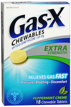 For the relief of pressure and bloating commonly referred to as gas. Gas-X Extra Strength tablets offer fast effective relief of pressure and bloating that antacids can't provide. They are specially formulated with simethicone, the antigas medicine doctors recommend most for pressure, bloating or discomfort referred to as gas. Gas-X Extra Strength Peppermint Creme chewable tablets have a pleasantly smooth, creamy mint flavor. Chewable tablets are also available in a great tasting Cherry Creme flavor.