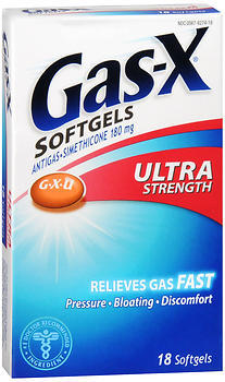 For the relief of pressure and bloating commonly referred to as gas. Gas-X Ultra Strength Softgels offer fast, effective relief of pressure and bloating that antacids can't provide. They are specially formulated with Simethicone, the antigas medicine doctors recommend most for pressure, bloating or discomfort referred to as gas.