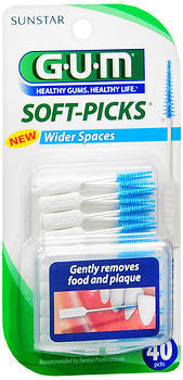 GUM Soft-Picks help you maintain your oral hygiene with ease and efficiency. Specifically designed for wider spaces, these Soft-Picks remove plaque and food particles without discomfort. Take them with you for quick, convenient cleaning after meals and use in combination with brushing for the best defense against gingivitis and gum disease.76 soft, flexible bristles slide between teeth to help remove food and plaque. Recommended by dentists and hygienists. Comfortable rubber bristles massage and stimulate gums. Convenient case makes it easy to use on-the-go. Safe for orthodontics, implants, bridges or crowns. Not made with natural rubber latex.