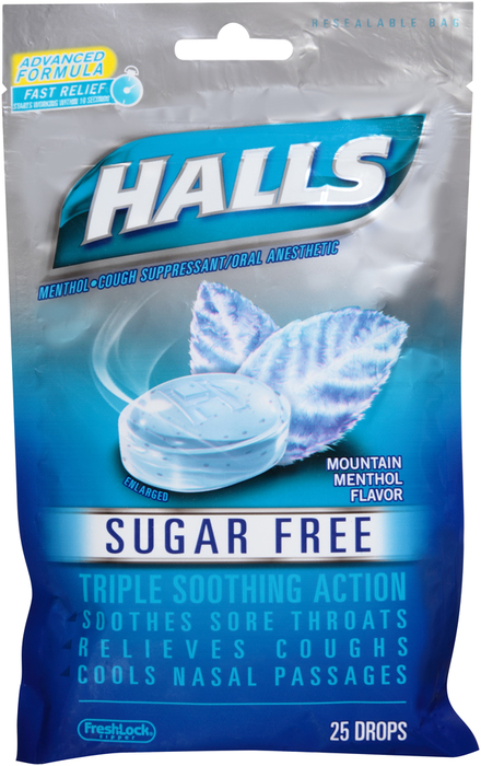 Halls Cough Suppressant Drops offer triple soothing action, relieving soreness, coughing and nasal congestion. They also function as an oral anesthetic to relieve minor throat and mouth pain. Plus, these drops are sugar free!