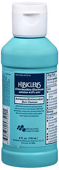 Skin wound and general skin cleansing: Thoroughly rinse the area to be cleansed with water. Apply the minimum amount of Hibiclens necessary to cover the skin or wound area and wash gently. Rinse thoroughly. Surgical hand scrub: Wet hands and forearms with water. Scrub for 3 minutes with about 5 mL of Hibiclens with a brush. Rinse thoroughly under running water. Repeat. Dry thoroughly. Personnel hand wash: Wet hands with water. Dispense about 5 mL of Hibiclens into cupped hands and wash in a vigorous manner for 15 seconds. Rinse and dry thoroughly. Preoperative skin preparation: Apply Hibiclens liberally to surgical site and swab for at least 2 minutes. Dry with a sterile towel. Repeat. Dry with a sterile towel. Store between 20-25 degrees C (68-77 degrees F). Laundering: Chlorhexidine gluconate skin cleansers will cause stains if used with chlorine releasing products. Rinse completely and use only non-chlorine detergents. See website for more details.