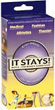 Time to toss the tape? It Stays is the ultimate garment accessory. A few industries where It Stays can be used: medical, fashion, athletics, theater. For men or women. Medical: Excellent for holding support and surgical stockings, anti-embolism stockings and orthopedic supports seccurely in place. Athletics: Knee and shin pads are held in place, elbow and turf pads won't slip and It Stays even helps prevent socks from riding down. Theater: Replace tape when needing to hold wigs, beards or mustaches in place. Toupees, costumes and fashion jewelry are secured in place until you decide to remove them. Fashion: Choose how much or how little you want to reveal. Effortlessly holds strapless bras or open fronted dresses in place. A must for use with bridal gowns or tuxedos, but flexible enough that It Stays even after that slow dance.