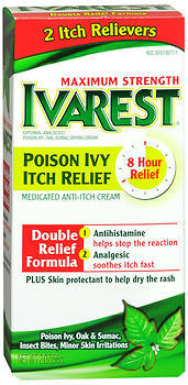 For the temporary relief of pain and itching associated with poison ivy, poison oak, poison sumac, insect bites or minor skin irritations. Dries the oozing and weeping of poison: ivy, oak, sumac. Ivarest contains the most effective active ingredients to relieve itching and discomfort for up to 8 hours, while helping to dry the rash. 1. Antihistamine helps stop the reaction. 2. Analgesic soothes itch fast. Plus skin protectant to help dry the rash.