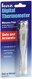 A safe alternative to glass thermometers. Clinically accurate. Memory recalls last reading. Waterproof. Mercury free. Oral or rectal. The Kaz Digital Thermometer makes temperature taking faster and easier than using glass thermometers. Fast and accurate, a reading within +/- 0.2 degrees F in 60 seconds. Memory recalls and displays last temperature taken. Automatic shut-off for longer battery life. Waterproof, for easy, more thorough cleaning. No glass to break, no fear of mercury poisoning.