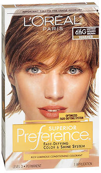 Preference Shade Guide: 6-1/2G is a light, caramel brown shade with gold tones, which will enhance warmth in your hair. For optimal color results, use on medium blonde to dark brown hair. Preference Shade Tips: If you hesitate between two Preference shades, choose the lightest one. On more than 50% gray, your results will be slightly lighter-looking than the results shown on package. On red hair, your color results will be light reddish brown.