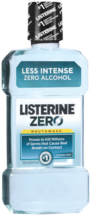Zero alcohol, less intense. Proven to kill millions of germs that cause bad breath on contact. From the #1 dentist recommended brand*. *Among OTC mouthwashes.