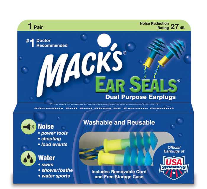 Dual purpose earplugs (water, noise) with removable cord. Reusable and washable. Incredibly soft seal rings for extreme comfort. Seal out noise: 27 NRR for power tools, loud concerts, shooting, racing events, etc. Seal out water: swim, shower, bathe, water sports. Noise reduction rating: 27 decibels (when used as directed).