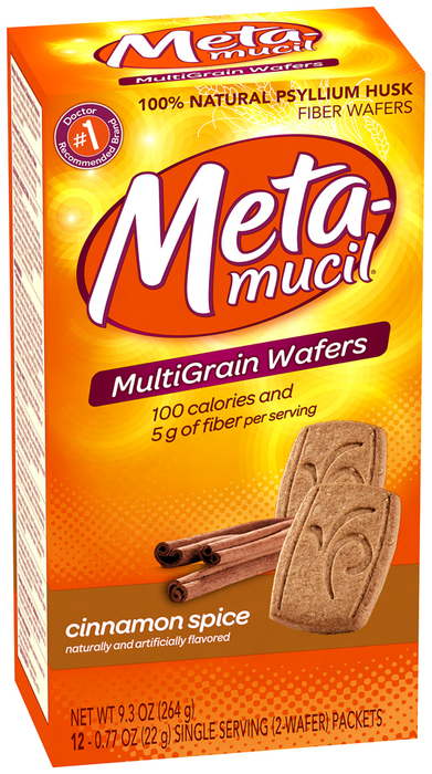 Getting enough fiber is a very important part of a healthy diet. Fiber not only helps to fight disease; it also balances your body’s cleansing process and can relieve constipation and chronic diarrhea. Crunchy and delightfully flavored with cinnamon spice, Metamucil Wafers will help you maintain regularity. Metamucil is the only big fiber supplement brand with wafers that contain 100% natural fiber. Plus, just one serving of this delicious snack provides 20% of your suggested daily fiber intake.