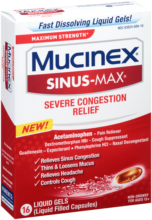 Mucinex Sinus-Max Severe Congestion Relief Liquid Gels - 16 CAP