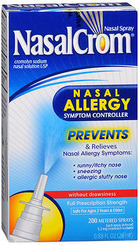 To prevent and relieve nasal symptoms of hay fever and other nasal allergies: runny/itchy nose, sneezing, allergic stuffy nose. Can prevent nasal allergy symptoms when used before exposure to the cause of your nasal allergies, and will build protection against future symptoms as long as you continue to use Nasalcrom Nasal Spray as directed. Provides original prescription-strength relief of nasal allergy symptoms. Works only in your nose, where nasal allergens attack. It helps to stop the cells in your nose from reacting to pollen, pet dander, and other allergens, so you don't experience nasal allergy symptoms. No drowsiness. No jitters. No 'rebound' nasal congestion. Safe to use with other medicines, including other allergy medicines. Non-habit forming. Safe to use throughout your allergy season. Good for year-round allergies. Safe for children as young as two years old. Easy to administer using the metered spray pump.
