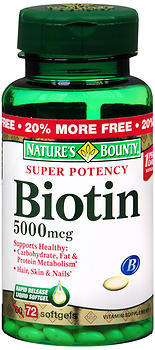 1 Softgel: Biotin (D-Biotin) 5,000 mcg; Soybean Oil; Gelatin; Vegetable Glycerin; Yellow Beeswax; Titanium Dioxide Color